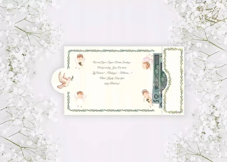 Karnet Koperta A5 GOŁB wydrukowany na wysokiej jakości papierze formatu A5 koperta. Karnet posiada kieszonkę na pieniądze. Karnet uszlachetniony złotem i tłoczony. W zestawie koperta. Uszlachetnienie: złoto / tłoczenie Format: A5 koperta Koperta: Biała / Złota