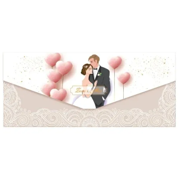 Po złożeniu format kartki DL, wyjątkowe złocenia, w środku życzenia i kieszonka na pieniądze. Dodatkowa koperta