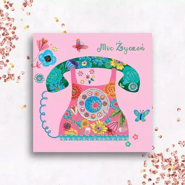 Ten wysokiej jakości karnet ma grafikę, która przykuwa wzrok. Uszlachetniony jest złotem i tłoczeniem. W zestawie znajduje się kolorowa koperta. Wymiary: 15.0 x 15.0 cm