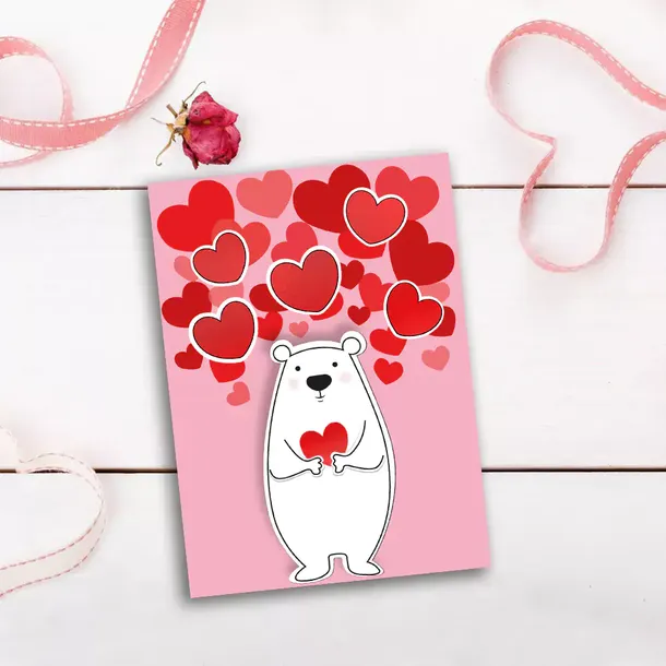 Karnet wydrukowano na wysokiej jakości papierze formatu B6. Karnet uszlachetnionoy czerwoną folią. W zestawie jest kolorowa koperta. Wymiary: 16.3 x 11.9 cm