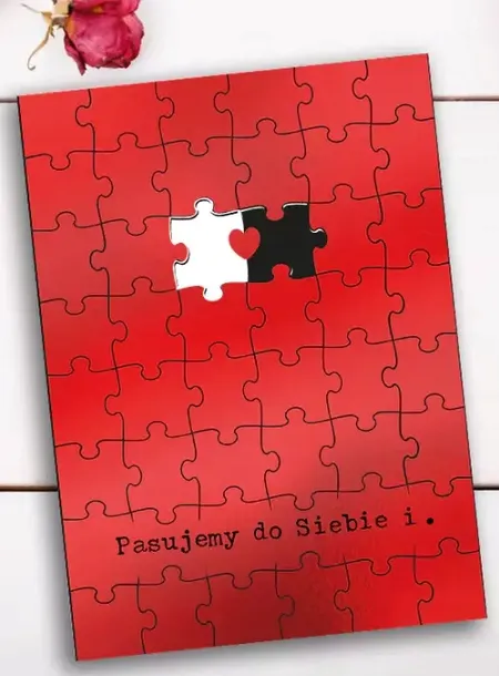 Karnet wydrukowano na wysokiej jakości papierze formatu B6. Karnet uszlachetnionoy czerwoną folią. W zestawie jest kolorowa koperta. Wymiary: 16.3 x 11.9 cm