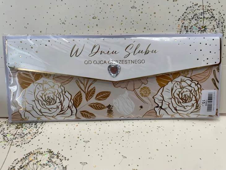 Karnet Dedykowany od Ojca Chrzestnego. Luksusowy karnet Ślubny z elementami złocenia lub srebrzenia, wykonany na specjalnym, grubym kartonie z licznymi dodatkami.