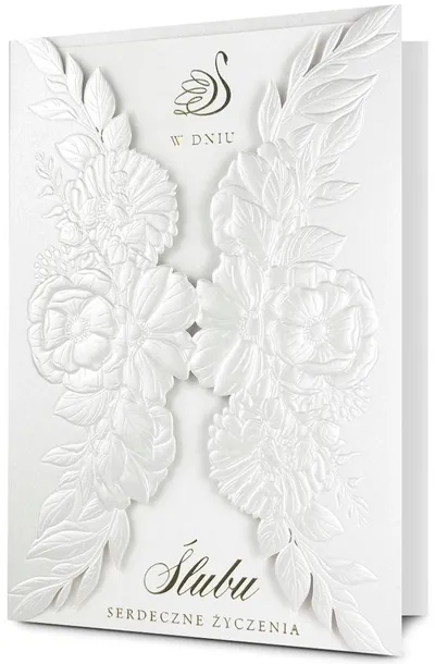 Kartka jest bogato i różnorodnie zdobiona (zależnie od wzoru: metaliczna folia, lakier perłowy,