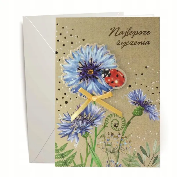 Kartka z kopertą, z życzeniami na różne okazje. Opakowana folią open.