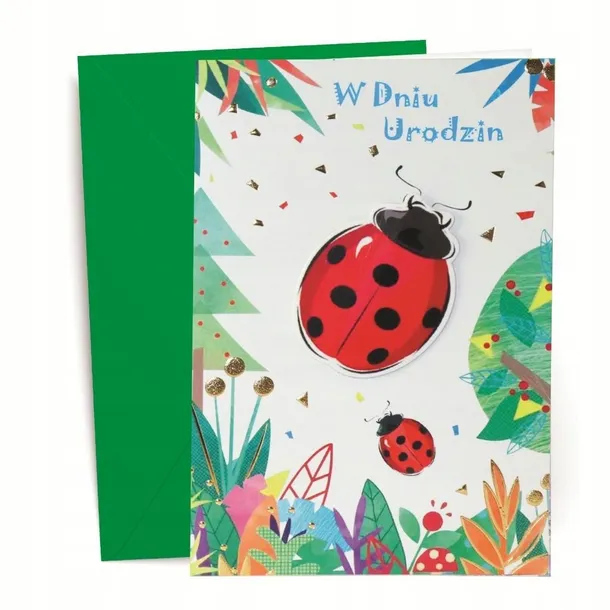 Kartka z kopertą, z życzeniami urodzinowymi. Opakowana folią open.
