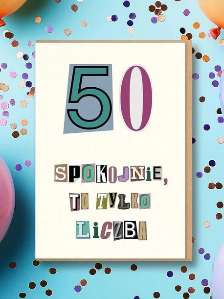 Pięćdziesiątka to nowa trzydziestka - tylko z lepszym gustem i większym luzem. Kartka to idealny sposób, by przypomnieć, że śmiech działa lepiej niż krem przeciwzmarszczkowy.Kartka urodzinowa SPOKOJNIE, TO TYLKO LICZBA / 50 to doskonały prezent na 50. urodziny dla mamy, taty, przyjaciela lub współpracownika. Zabawna i pozytywna, sprawdzi się jako kartka urodzinowa z humorem, która rozładuje atmosferę przy torcie i pokaże, że pięćdziesiątka to dopiero początek najlepszych lat.Kartka w zestawie z kopertą jest pusta w środku. Została wydrukowana na papierze ekologicznym. Jej wnętrze czeka na wypełnienie treścią płynącą prosto z Twojego serca!Wymiary kartki (po złożeniu): 12 cm 17 cmGramatura papieru: 250 g/mW zestawie elegancka koperta z eko kraftuWymiary koperty: 12,5 cm 17,5 cmGramatura koperty: 100 g/mZestaw zapakowany w folię