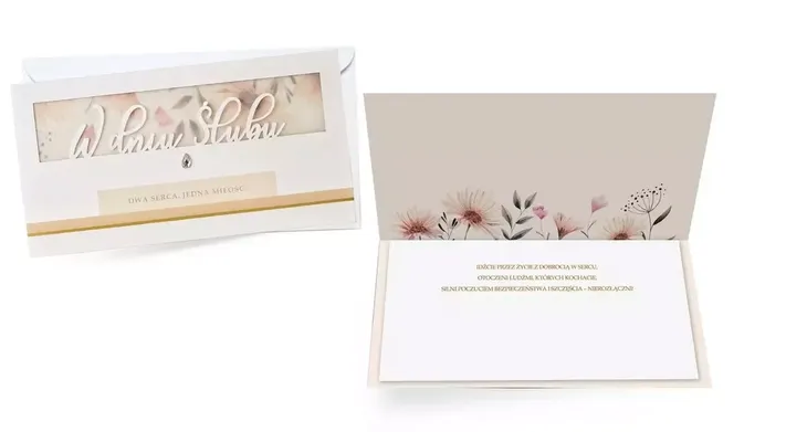 Każda kartka w kolekcji Passion Moments to małe arcydzieło – wyjątkowe i niepowtarzalne, świetne w dotyku, piękne wizualnie, po prostu niepowtarzalne. Kartki PM są bardzo bogato zdobione, a jednocześnie skromne i stylowe, cały efekt tkwi w detalach i doskonałym wykonaniu. W zależności od wzoru, na kartkach znajdują się dekoracje ze złotej, srebrnej, perłowej lub holograficznej folii, a także doklejki biżuteryjne, kokardki, brokat, laserowe wycięcia, wstążeczki i inne dodatki. Wnętrze karnetu do zawsze atrakcyjna grafika i tekst życzeń. Kartki mają w komplecie dopasowaną kopertę. Cechy szczególne: • zdobienie: przynajmniej dwie folie (metaliczne/perłowe/holograficzne), brokat, elementy doklejane, wycięcia laserowe, wstążeczki – w zależności od wzoru, • wnętrze: kolorowe, z delikatną grafiką, wyjątkowe życzenia w środku, • w komplecie: dopasowana kolorystycznie koperta, • okazja: ślub.