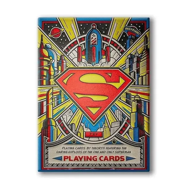 Wyposażona w całkowicie niestandardową grafikę, najwyższej jakości wytłoczenia i ozdobiona żywymi kolorami Supermana każda talia jest zapieczętowana. Daily Planet.