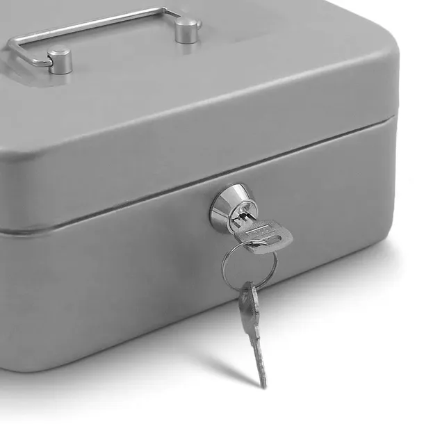 Fabrycznie nowa, wysokiej jakości metalowa kasetka do przechowywania lub transportu monet, banknotów lub innych wartościowych przedmiotów.Solidna i poręczna walizka z metalu wyposażona w sortownik do monet jest idealnym miejscem do przechowywania banknotów oraz monet. Na dole jest sporo miejsca na przykład na rachunki, paragony, monety, banknoty i inne przydatne przedmioty. Dla bezpieczeństwa kasetka jest zamykana na klucz. Ergonomiczny uchwyt sprawia że transport staje się dziecinnie prosty.