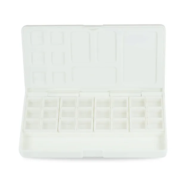Kasetka na farby akwarelowe to organizer przygotowany na 24 farby akwarelowe Julia Nessa oraz miejsce do mieszania farb ze sobą w celu uzyskania jeszcze większej gamy kolorystycznej.