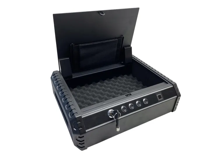 Kompaktowa kaseta do przechowywania mniejszych kosztowności, biżuterii lub niewielkiej ilości gotówki. Wyjątkowość kasety polega na możliwości wyboru sposobu zabezpieczenia przechowywanych przedmiotów. Możesz ją zablokować za pomocą odcisku palca, kombinacji cyfr lub klucza awaryjnego. W pamięci kasety można zapisać do 20 różnych odcisków palców. Wysokiej jakości stalowa konstrukcja zwiększa trwałość i jednocześnie bezpieczeństwo. Przyjemna zewnętrzna gumowa powłoka i wewnętrzna miękka wyściółka. W razie potrzeby kasetę można zabezpieczyć załączonym materiałem kotwiącym.