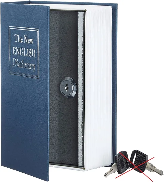 - Przenośny, zamykany sejf w kształcie książki, idealny do ukrywania drobnych kosztowności w biblioteczce