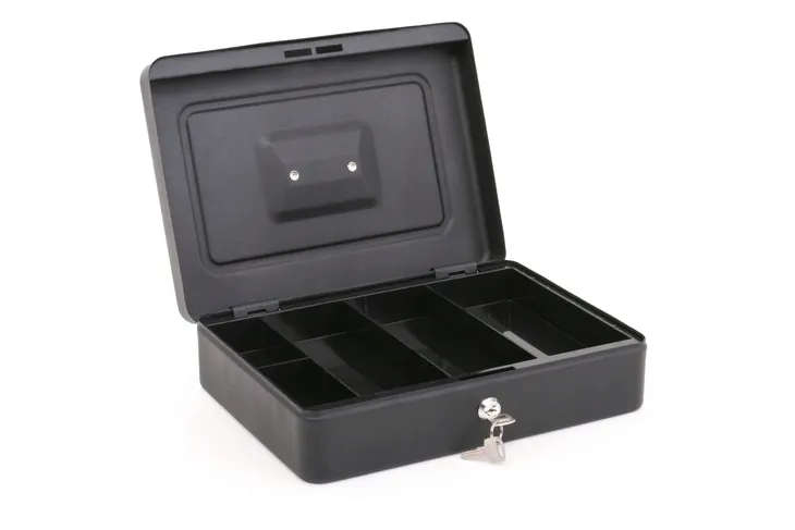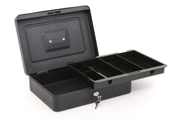 Metalowa kasetka idealna do przechowywania niewielkich kwot pieniędzy, dokumentów lub innych drobnych przedmiotów.