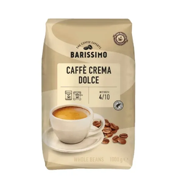 - Barissimo Crema Dolce charakteryzuje się łagodnym, delikatnym smakiem z nutami czekolady i orzechów. Idealna do przygotowania kremowego espresso oraz cappuccino.