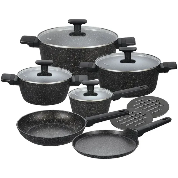 12-elementowy zestaw garnków i patelni z marmurkową powłoką nieprzywierającą marki KLAUSBERG.