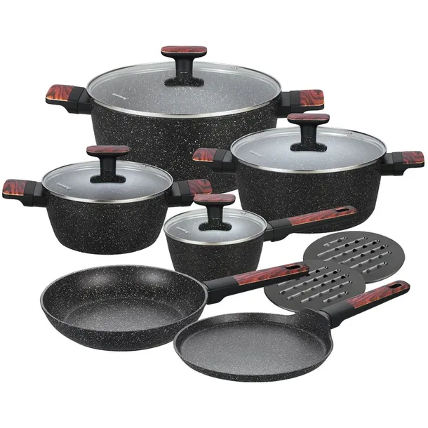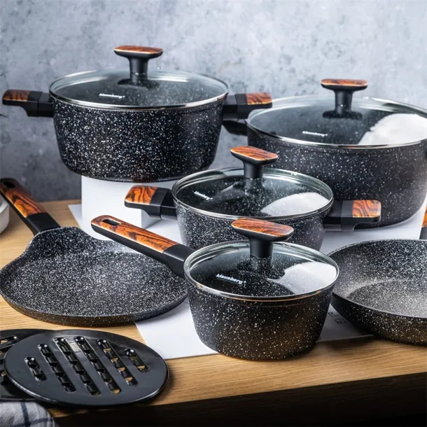 12-elementowy zestaw garnków i patelni z marmurkową powłoką nieprzywierającą marki KLAUSBERG.