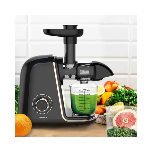 Nowoczesna sokowirówka wolnoobrotowa KB-7867 w ponadczasowej czerni to doskonałe połączenie efektywności, designu i troski o zdrowie. Dzięki zaawansowanej technologii wyciskania na zimno urządzenie pozwala cieszyć się pełnią smaku i wartości odżywczych, niezależnie od tego, czy przygotowujesz sok z marchwi, jabłek, selera czy imbiru.