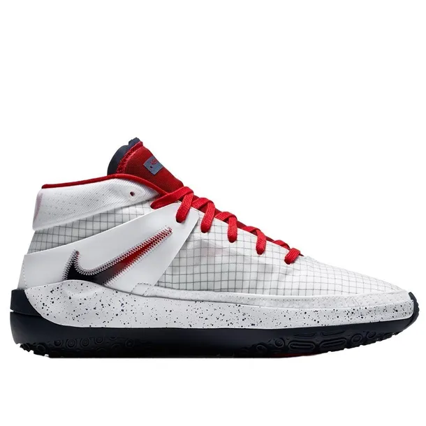 Jeśli chcesz być dobrym zawodnikiem, musisz działać po obu stronach boiska. Model KD13 z poduszką gazową Air Zoom na całej długości przyszytą bezpośrednio do cholewki i dodatkową poduszką Zoom Air w przedniej części buta zapewnia dynamikę i optymalny zwrot energii, co przekłada się na świetny styl podczas długiej gry.Amortyzacja na całej długości podeszwy blisko stopyPełnowymiarowa amortyzacja Nike Air Zoom przyszyta bezpośrednio do cholewki dopasowuje się do kształtu stopy, zapewniając uczucie niezwykłej sprężystości i umożliwiając płynne przetaczanie stopy.Podwójna amortyzacja Zoom AirDodatkowa poduszka gazowa Zoom Air znajdująca się w przedniej części buta pod pełnowymiarową poduszką Nike Air Zoom. Ułatwia poruszanie się i zapewnia większy zwrot energii.Wygoda i dopasowanieMiękka cholewka jest lekka i elastyczna. Do jej konstrukcji użyto minimalnej ilości materiałów, aby już od pierwszego założenia zapewniała idealne dopasowanie.Więcej zalet Widoczne wycięcia w podeszwie środkowej zmniejszają wagę, zwiększają elastyczność oraz pozwalają zobaczyć amortyzację Zoom Air. Miękki język i kołnierz zwiększają wygodę. Prezentowany kolor: Biel/Obsydian/Czerwony Styl: CI9948-101