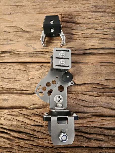 Bardzo profesjonalny i w całości wykonany ze stali kwasowej oraz mocnego tworzywa sztucznego mechanizm do mocowania przetwornika Garmin Panoptix Livescope model LVS 32. Pasuje na sztyce montażowe o średnicy 16mm. Dzięki temu mocowaniu bardzo szybko przełączamy przetwornik w odpowiedni tryb tj. do przodu, w dół lub tryb perspektywy. Odpowiednie umiejscowienie otworów do blokady w żądanym widoku eliminuje możliwość pomyłki w ustawieniach odpowiednich kątów. W nowym modelu istnieje możliwość ustawienia kilku kątów w trybie perspektywicznym.