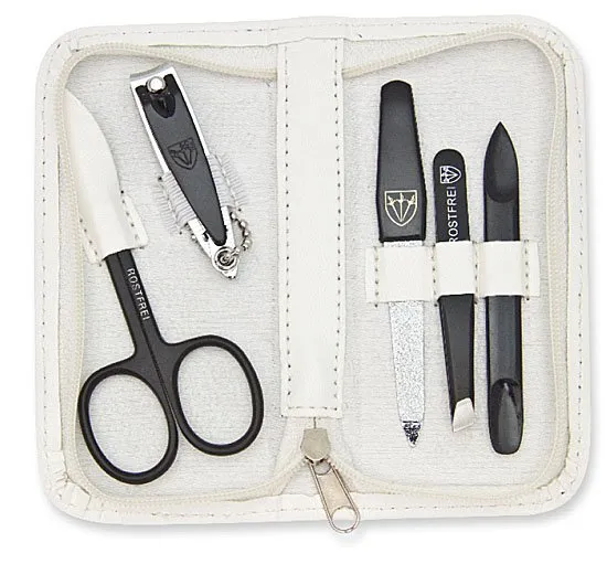 W skład zestawu wchodzi: pilniczek, nożyczki do skórek, mały obcinacz do paznokci, pęseta oraz dwustronne narzędzie do skórek i czyszczenia paznokci. Każdy element został starannie wykonany z wysokiej jakości stali nierdzewnej, co zapewnia nie tylko trwałość, ale także łatwą pielęgnację narzędzi.