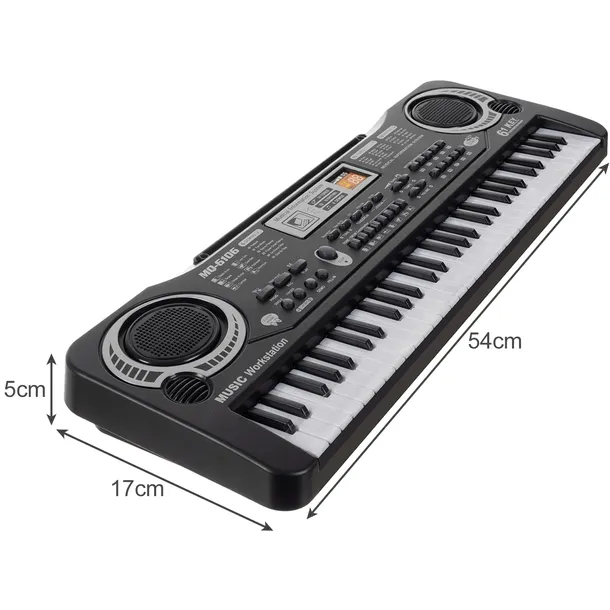 - WIELOFUNKCYJNY – 61 klawiszy, 6 różnych piosenek, 16 możliwych tonacji, 10 rytmów do wyboru, 8 rodzajów perkusji, 2 tryby nauki.