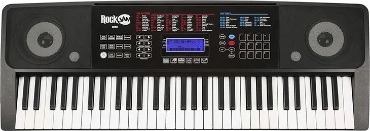 - RockJam 761 Keyboard Piano Kit zawiera cyfrową klawiaturę z 61 pełnowymiarowymi klawiszami, które zapewniają wrażenie tradycyjnego pianina przy zachowaniu kompaktowej, przenośnej konstrukcji, która może być zasilana z sieci (zasilacz w zestawie) lub z baterii (nie ma w zestawie)