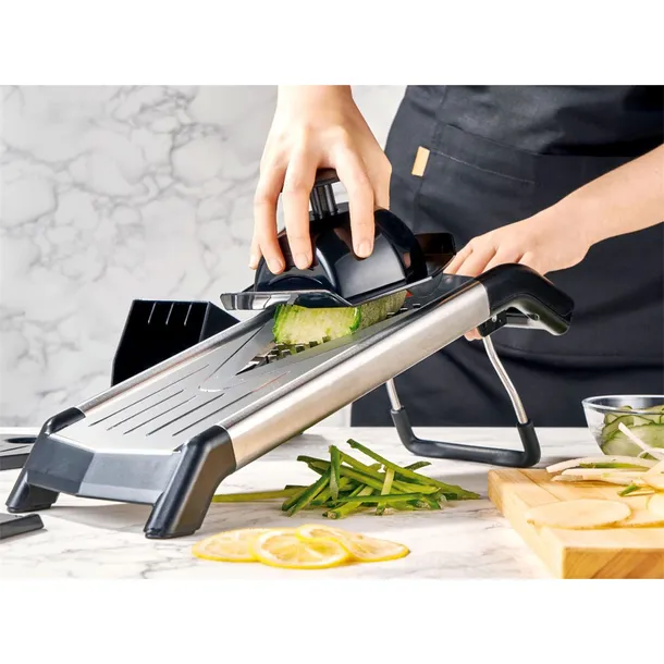 Krajalnica z ostrzem w kształcie litery V - łatwe i szybkie krojenie warzyw.
