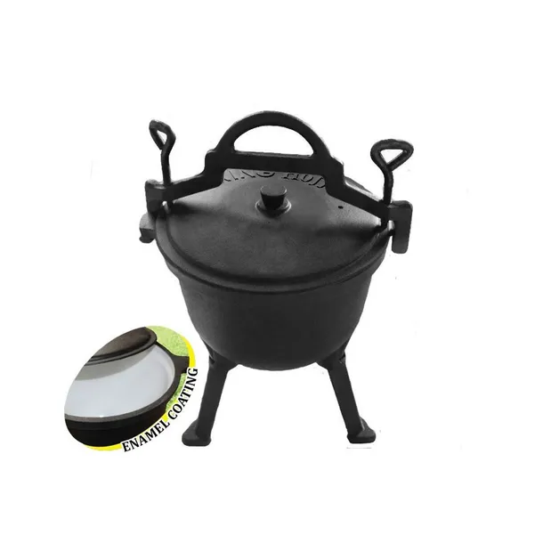 Kociołek żeliwny myśliwski emaliowany o pojemności 7L firmy KINGHOFF wykonany z żeliwa szarego, oksydowany z zewnątrz oraz emaliowany wewnątrz. W tej wersji wnętrze kociołka oraz spód pokrywy pokryte emalią żaroodporną która zapobiega przywieraniu potraw.