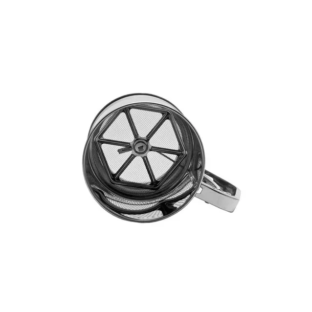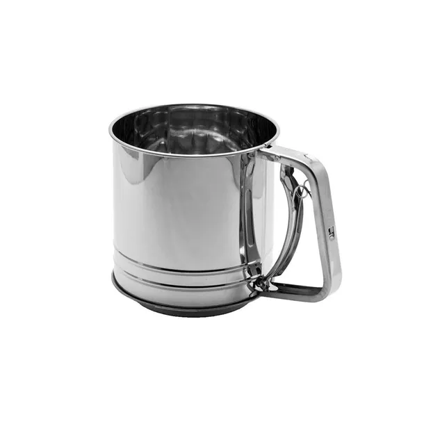 Przesiewacz wykonany ze stali nierdzewnej. Przeznaczony do przesiewania mąki, cukru pudru, kakao. Sprężynowy uchwyt poprzez naciskanie napędza sito które obraca się i umożliwia przesiewanie zawartości.