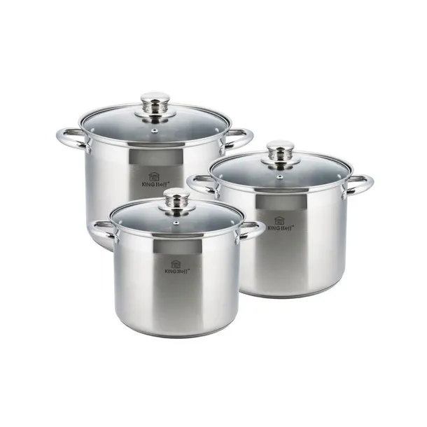 ZESTAW 3 CIĘŻKICH GARNKÓW GASTRONOMICZNYCH TYPU STOCK POT 6 ELE. 9.0L + 7.2L + 5.6L z 5-warstwowym dnem akutermicznym.