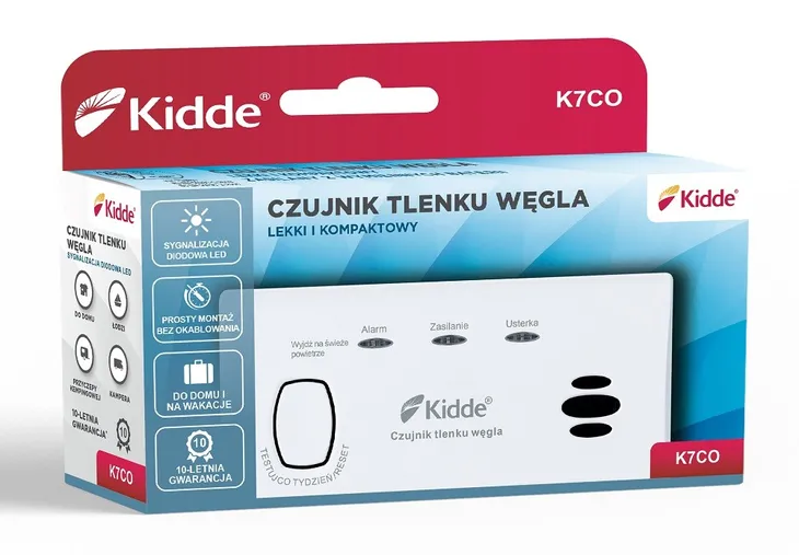 Czujnik tlenku węgla z wyświetlaczem K5DCO wyposażony w sensor elektrochemiczny Kidde, gwarantujący 10-letni okres pracy. Zasilanie bateryjne umożliwia zamontowanie detektora w optymalnym miejscu w pomieszczeniu oraz zapewnia ochronę także w przypadku zaniku napięcia zasilania w sieci.