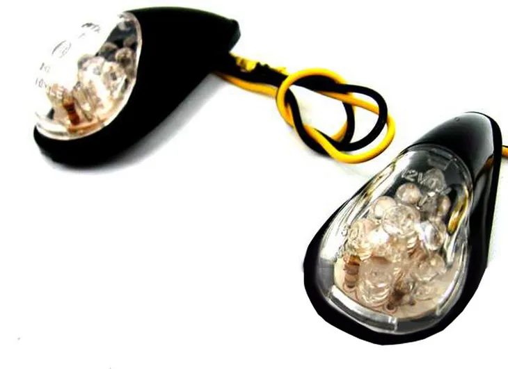 Bardzo popularny kierunkowskaz motocyklowy. Obudowa czarna z białym kloszem.