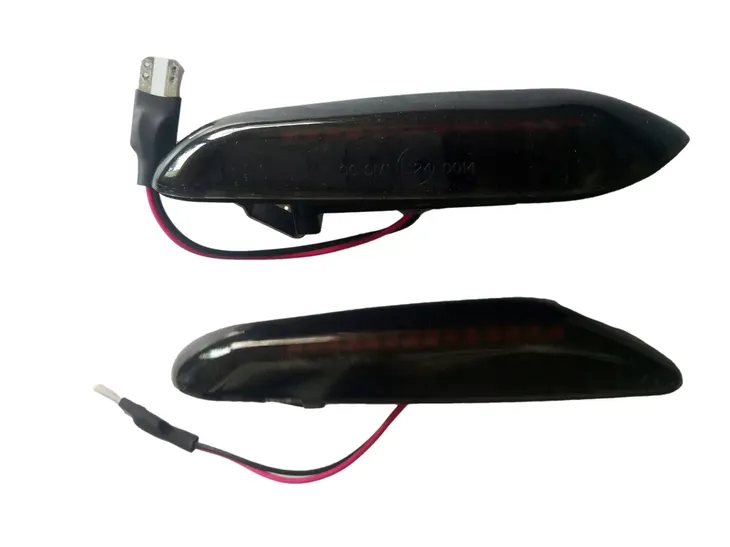 Przedmiotem naszej aukcji jest komplet (para) kierunkowskazów bocznych w błotnik do samochodów marki BMW. Kierunkowskazy są nowe w stanie idealnym bez jakichkolwiek uszkodzeń - przyciemniane (dymione). Migacze dynamiczne z diodami LED wbudowanymi w kierunkowskaz. Kolor światła diody: pomarańczowy. Element w pełni kompatybilny z pojazdem (nie wyświetla informacji o błędach braku żarówki). Homologacja europejska. Cena za komplet dwóch sztuk.