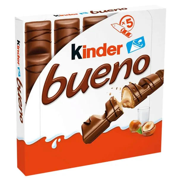 - Kinder Bueno Wafel w mlecznej czekoladzie wypełniony mleczno-orzechowym nadzieniem 107