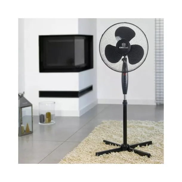 Łatwy w montażu, wentylator podłogowy, dający delikatne uczucie chłodu w upalne dni. Urządzenie posiada trzystopniową regulację prędkości nawiewu. Wyposażone jest w funkcję automatycznej oscylacji, dzięki czemu może obracać się w kierunkach bocznych. Zwiększa to zasięg oddziaływania urządzenia. Dodatkowo kierunek nadmuchu można regulować zmieniając ręcznie kąt nachylenia głowicy. Solidna podstawa zapobiega upadkowi, a możliwość regulacji wysokości za pomocą rury teleskopowej, pozwala dodatkowo na ustawienie odpowiedniego pułapu nawiewu. Wbudowana lampka sygnalizuje pracę urządzenia.Specyfikacja produktu: