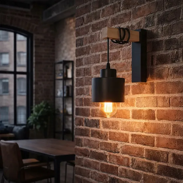 Kinkiet doskonale wpisuje się w aranżacje loftowe, industrialne, nowoczesne, ale dzięki drewnianym elementom sprawdzi się również w bardziej klasycznych wnętrzach.