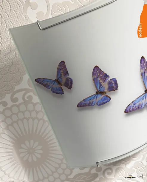 Plafon Farfalla to stylowe połączenie metalu i szkła. Jego zaokrąglony kształt zdobiony motywem motyli