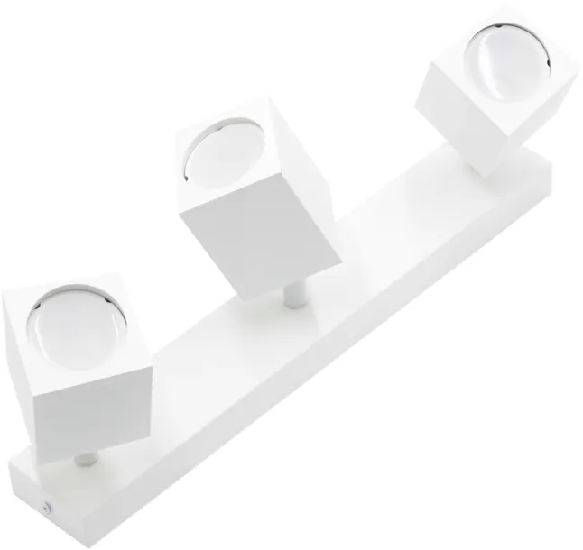 Kinkiet lub lampa sufitowa w formie metalowego prostokąta mocowanego do ściany bądź sufitu, z trzema kwadratowymi reflektorkami ustawianymi pod dowolnym kątem.