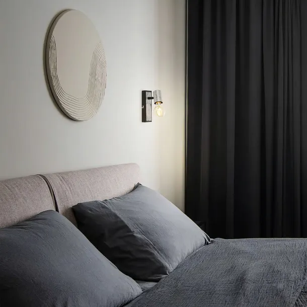 - Nowoczesny reflektor ścienny w kolorze antycznego srebra doskonale łączy w sobie klasyczny urok z industrialnym charakterem.