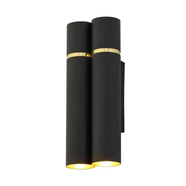 Kolekcja Lynx to efektowne lampy, które swoim kształtem przypominają tuby. Złoty paneldookoła oprawy jest nawiązaniem do bransoletek i eleganckich zapięć kobiecych akcesoriów.W stylowym detalu można doszukać się także odniesień do bogatych zdobieństosowanych w architekturze.Tym, co charakteryzuje serię Lynx jest z pewnością niebanalny, nieco ekstrawaganckikształt. Podłużne tuby z półokrągłym zakończeniem przyciągają wzrok i nie pozostawiająnikogo obojętnym. Stworzone z myślą o indywidualistach, ceniących odważne i unikalnerozwiązania. Czarno-złota kolorystyka doskonale ze sobą współgra, podkreślającreprezentacyjne oblicze lamp.Fani wyjątkowych i oryginalnych form z pewnością docenią osobliwy charakter lamp z seriiLynx. Łącząc ze sobą oprawy wchodzące w skład kolekcji, można stworzyć spójne i jedynew swoim rodzaju wnętrza przepełnione elegancją i wykwintnością.Nowoczesny kinkiet z dwoma punktami światła ze stylowej linii Lynx. Lampa wyróżnia się efektowną czarno-złota kolorystyką oraz złotym panelem dookoła oprawy, nawiązującym do kobiecej biżuterii.