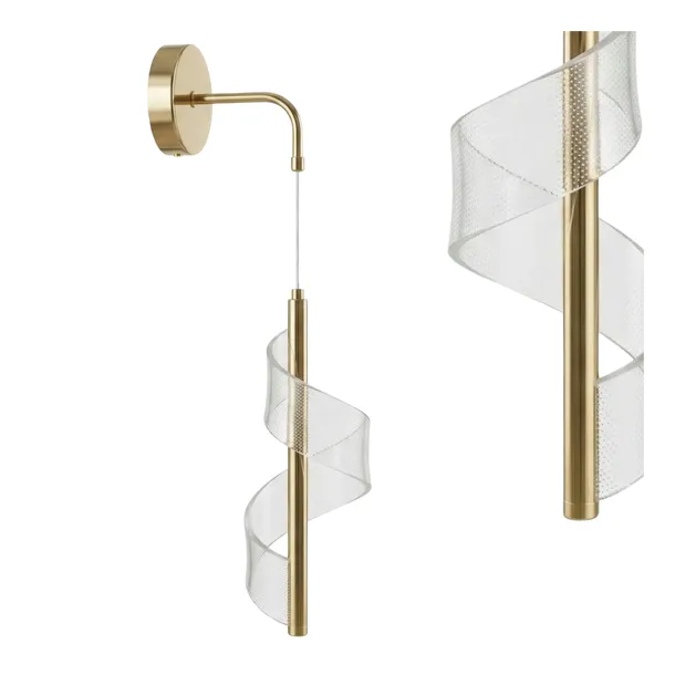 Lampa Ścienna LED Toolight G177-W Złota Transparentna Spirala
