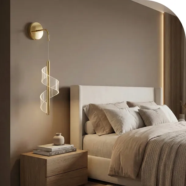 Kinkiet LED Toolight G177-W to designerskie oświetlenie ścienne, które łączy nowoczesną formę z elegancją złotego wykończenia. Transparentna spirala tworzy dekoracyjny efekt świetlny, a regulacja wysokości pozwala dopasować lampę do przestrzeni.
