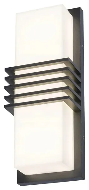 Zewnętrzna lampa ścienna Rodez reprezentuje styl nowoczesny. Ze swoją antracytową obudową i biały kloszem wygląda dobrze na ścianie o dowolnym kolorze, a jej naturalne biało światło zapewnia efektywne oświetlenie tarasu lub zewnętrznej ściany domu. Lampa wykonana z metalu i tworzywa sztucznego posiada wbudowane, energooszczędne źródło światła LED. Moc źródła należącego do wynosi 12 W, jasność 800 lumenów, temperatura barwowa 4000 K, a żywotność 30 000 godzin. Wymiary lampy zewnętrznej są następujące: wysokość 300 mm, szerokość 115 mm, odległość od ściany 70 mm. Stopień ochrony IP44 zapewnia ochronę przed wnikaniem cząstek o maksymalnej średnicy do 1 mm oraz rozbryzgami wody w każdym kierunku.