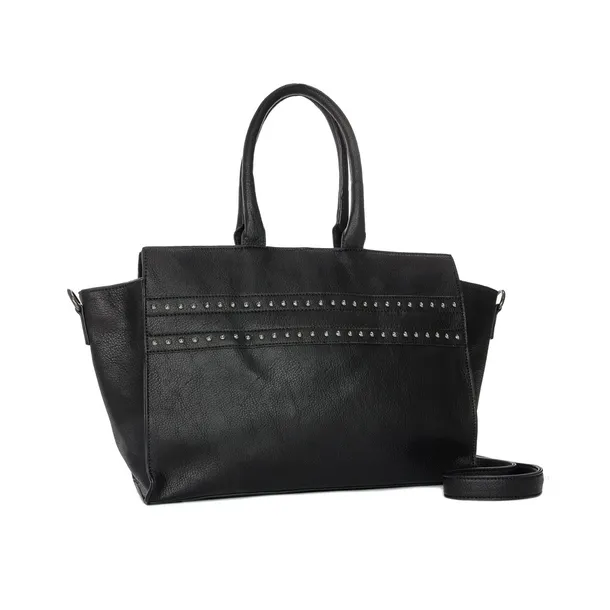 Duża, mieszcząca format A4 torebka Big star wykonana z tkaniny poliestrowej w klasycznym kolorzeczarnymto dość ciekawa propozycja. Dedykowana dla każdej kobiety, która lubi się wyróżniać i nie boi się bawić modą. Bez wątpienia pomieści wszystko to, co najpotrzebniejsze.W środku znajdziemy 2 otwarte kieszonki np. na telefon lub smartfon i 1 zamykaną na suwak. Z przodu torebki mamy dodatkową kieszonkę zapinaną na zamek.