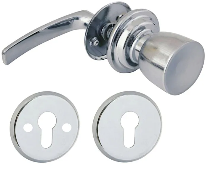 Gałko klamka drzwiowa na dzielonym szyldzie LOB MP2102 chrom w zestawie z szyldami na wkład