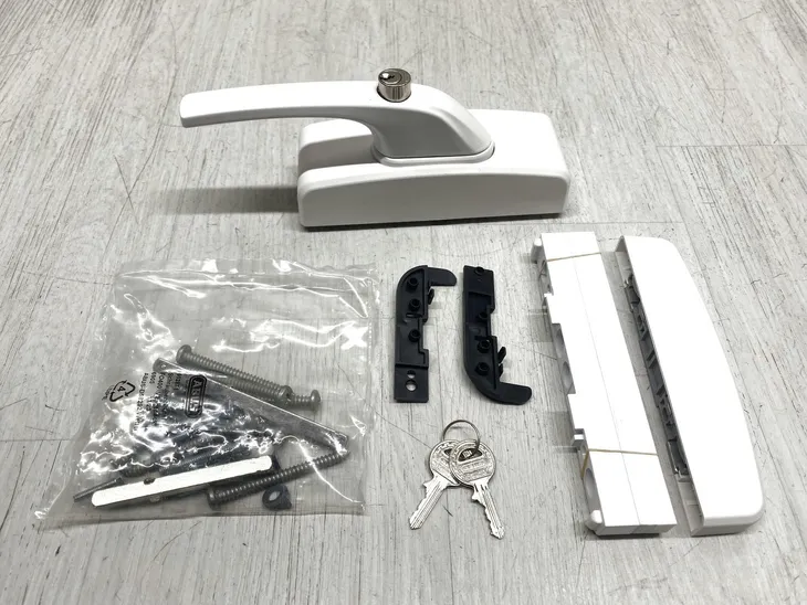 Uniwersalna blokada klamki okiennej z regulowaną blokadą i funkcją alarmu: trzyma się na tworzywie sztucznym (tylko w połączeniu z kotwą mocującą lub zaprawą wtryskową 100), aluminium i powierzchni drewnianych