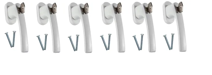 6x Klamka okienna Aluminiowa z kluczykiem BIAŁA.