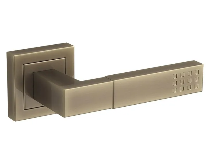 - Klamka na kwadratowym, dzielonym szyldzie