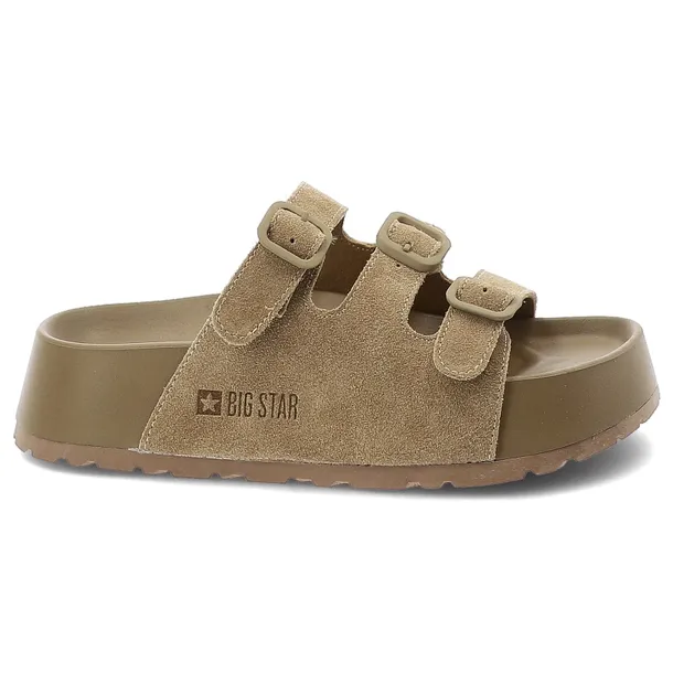 Klapki damskie Big Star, cholewka ze skóry naturalnej z regulowanymi paskami na grubej podeszwie, beżowe, TT274530