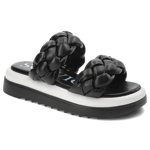 Czarne Stylowe Klapki Sca'Viola Wsuwane Obuwie Damskie